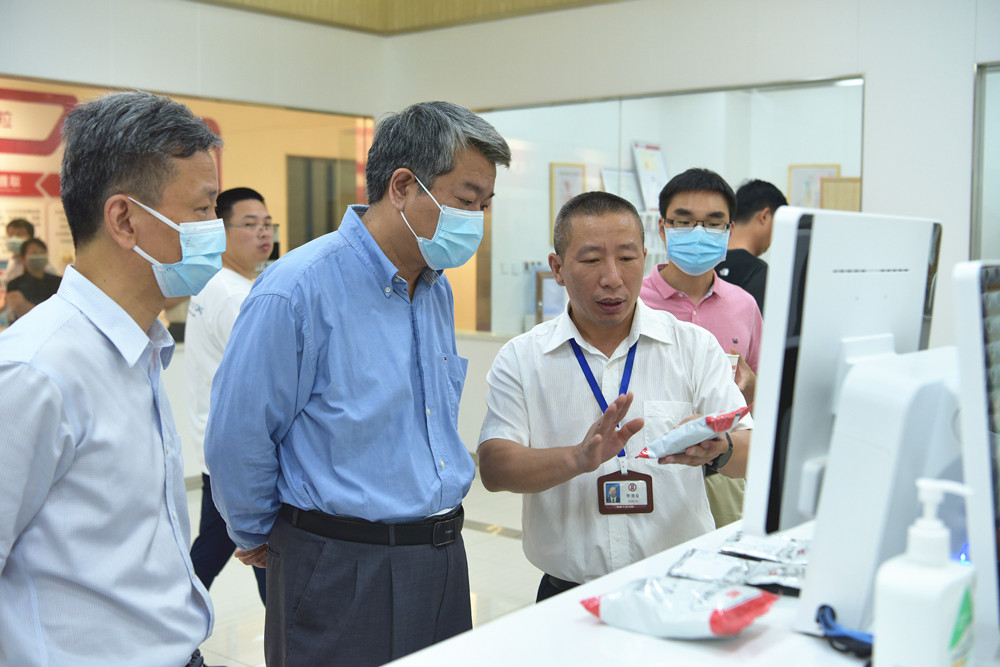 在持正堂药业展厅,李兵深入了解了中药数字提取技术、抗疫捐赠事迹和主要产品等方面的内容。随后来到劲牌共享智慧药房,亲身体验了互联网 模式的问诊抓药流程。在参观劲牌研究院和数字化中药提取车间时,李兵详细询问了中药提取的技术方法、指标,提取物的参照标准、种类与规划等情况。
